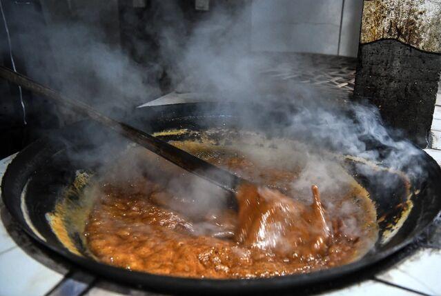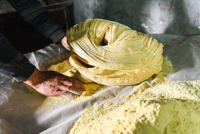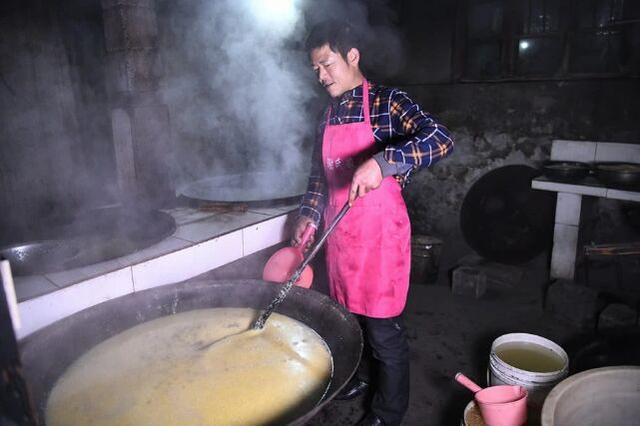 官村麻糖以玉米、紅薯等為原料,基本制作流程分為發芽、煮糊、發酵、過濾、熬糖、扯糖等六個步驟,每一步都必須認真仔細,特別是在時間掌握上要達到精準控制,哪一步出現差池,就會前功盡棄,宣告失敗。