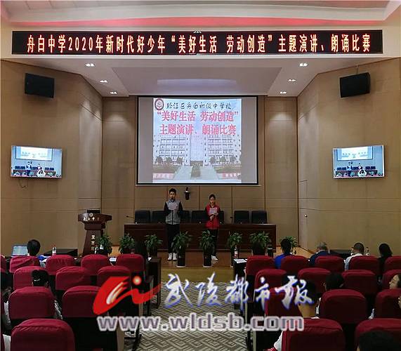 舟白初級中學:近日,舟白初級中學舉行“美好生活 勞動創(chuàng)造”主題演講、朗誦比賽,唱響勞動的贊歌。七年級、八年級各20名學生代表參加本次比賽,7名優(yōu)秀語文老師擔任評委。