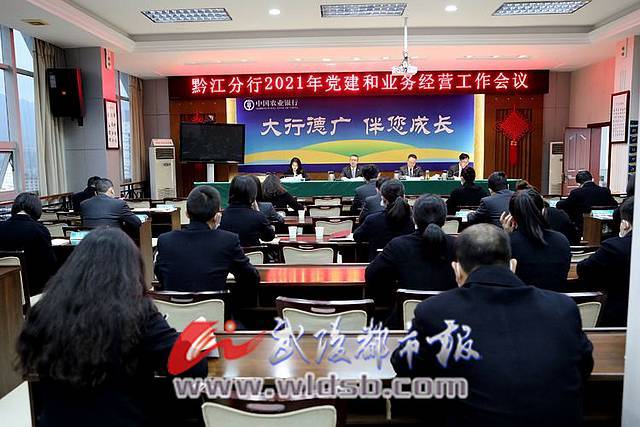 本報訊(記者 王巧西 文/圖)近日,農行黔江分行召開2021年黨建和業務經營工作會議。分行班子成員、全體中干、優秀員工代表、部室業務骨干、網點客戶經理參加會議。會議由分行黨委委員、紀委書記余震波主持。