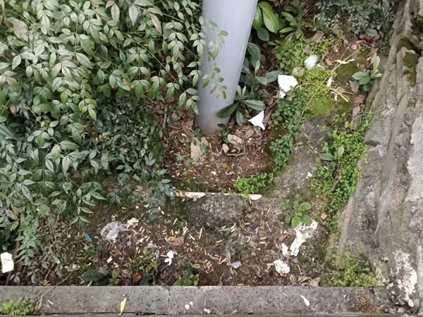 綠化帶散落的垃圾