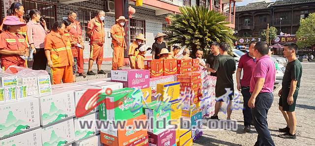 “我們采購了礦泉水、飲料、方便面、藿香正氣水等防暑降溫物品,送到堅守一線的工作人員手中。我們這樣做的目的,就是為了表達對他們的崇高敬意,他們真的辛苦了!”濯水鎮(zhèn)商會有關負責人表示。