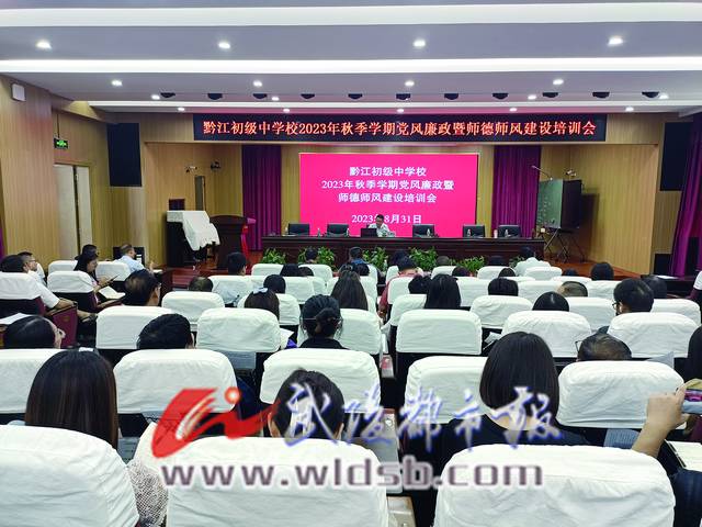 本報訊(記者 田丹 文/圖)秋季學期到來,為加強黨風廉政和師風師德建設,服務學校高質量發展,營造風清氣正的教育環境,8月31日上午,黔江初級中學召開了黨風廉政建設暨師德師風建設專題培訓會,全體教職工190余人參加。