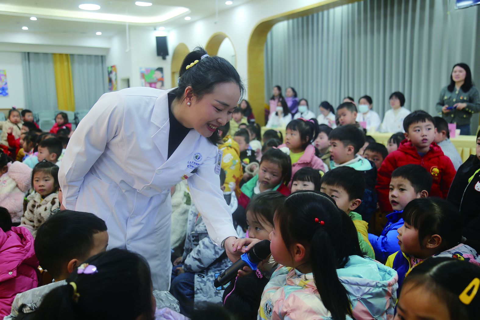 在活動現場,醫務人員以《眼睛的秘密》《小口腔 大健康》為題,給孩子們普及了如何科學用眼、愛護口腔的小知識。