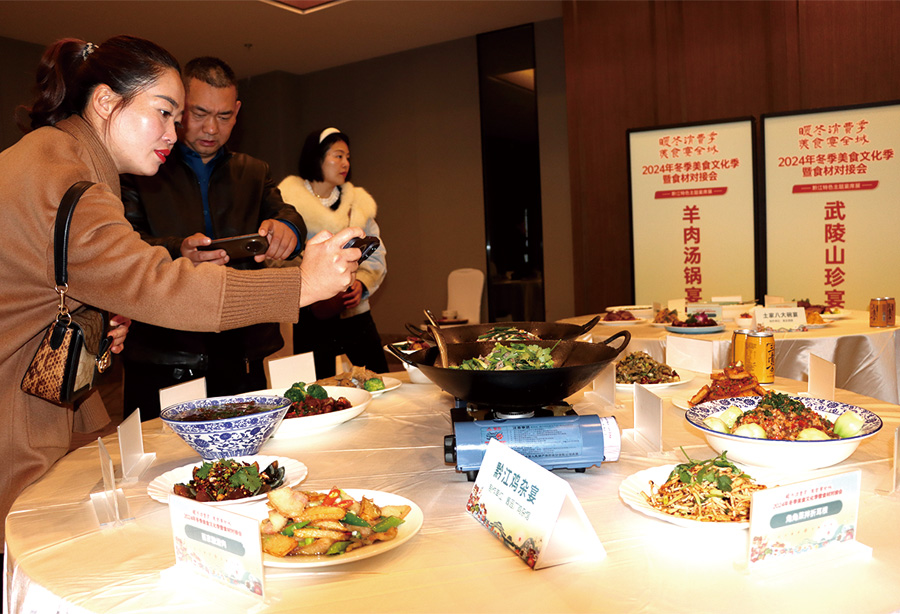 此外,暖冬湯鍋創新展示環節也備受矚目。多家餐飲商家現場展示了創新的暖冬湯鍋,如黔江刨湯宴、全牛宴、冬季羊肉湯鍋等,不僅豐富了消費者的餐飲選擇,也進一步提升了黔江美食的知名度和美譽度。